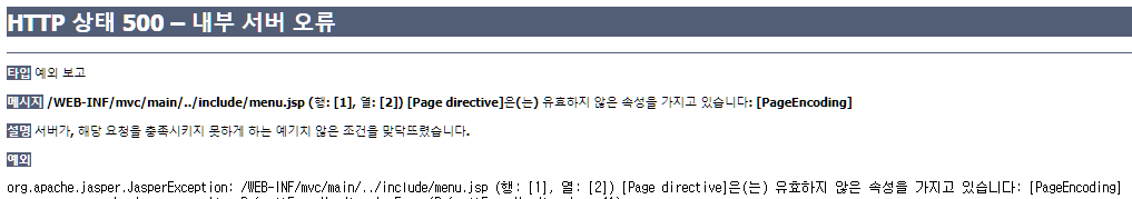 [Page directive]은(는) 유효하지 않은 속성을 가지고 있습니다: [PageEncoding]